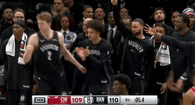 比赛第四节,小波特顶着科比-怀特完成强硬上篮,篮网完成5.4秒准绝杀。
